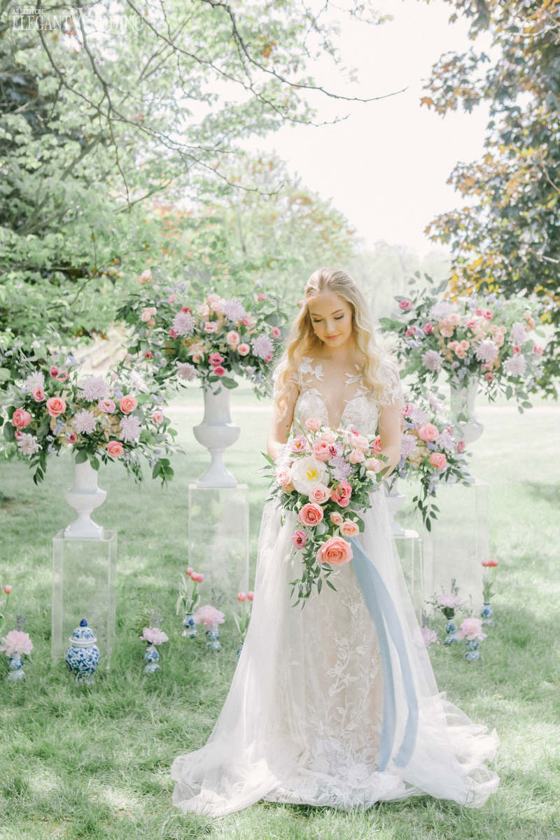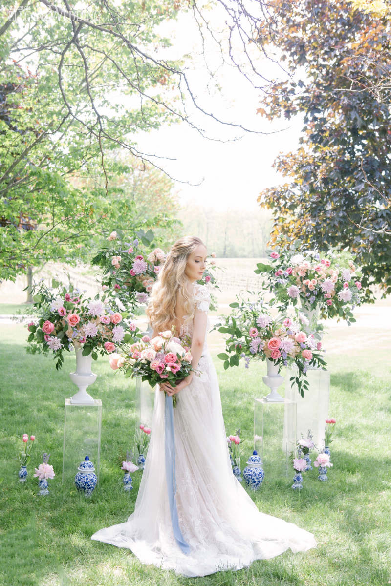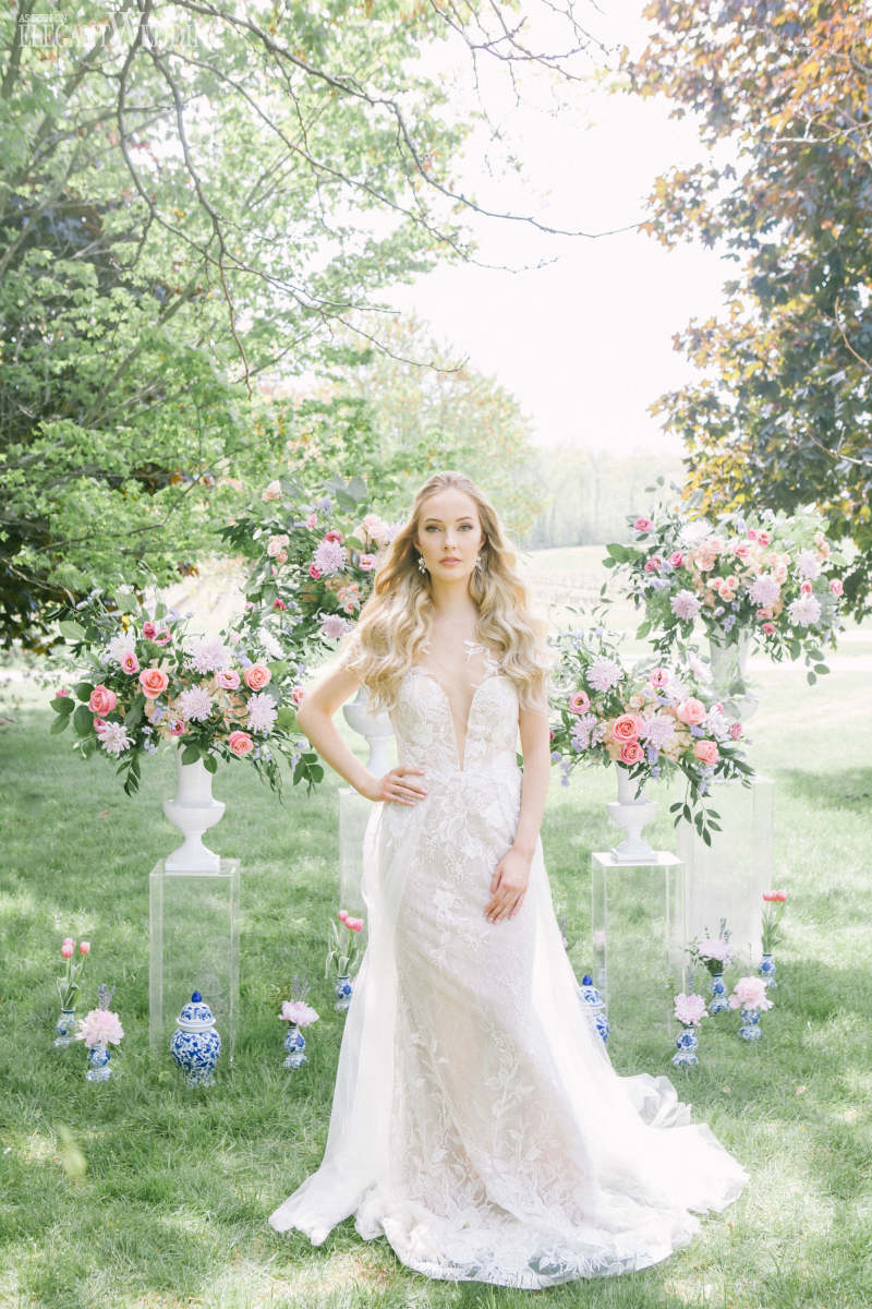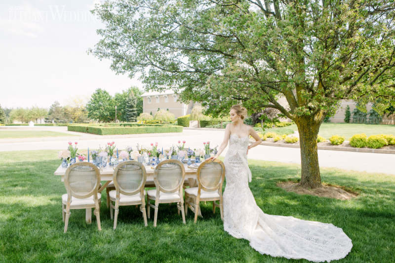 Provence encompasses all the elements above. The team showcased delicate lace bridal gowns, lavender sprigs throughout the tablescape, and a timeless colour palette.