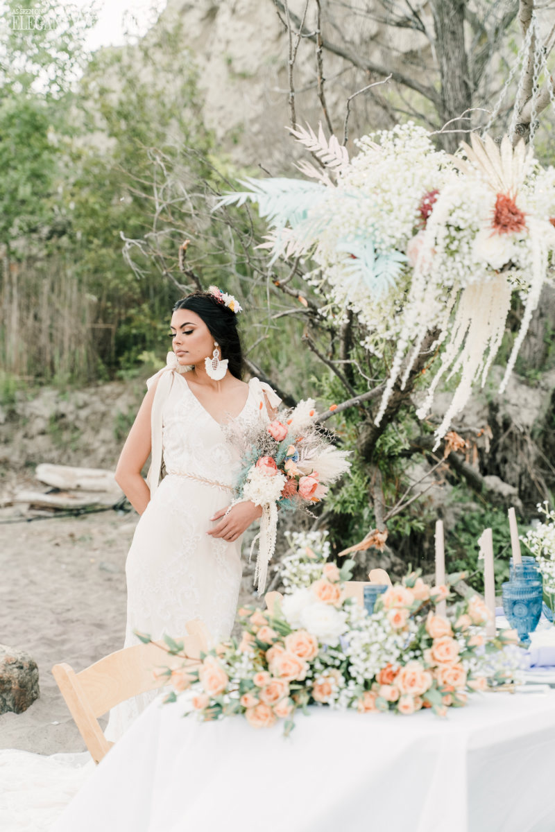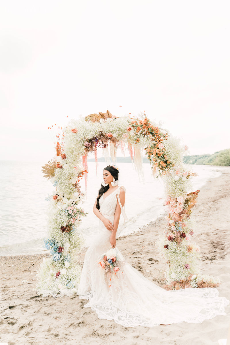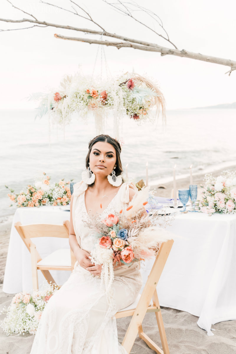 Planning a wedding takes hard work no matter the venue. And while planning a beach wedding isn’t that much harder it does involve some extra planning. This beautiful styled shoot sets the tone for a boho-inspired theme. Whether you’re planning to spend a week with family at an all-inclusive resort or planning your wedding at a local beach the attention to detail will ensure your oceanside nuptials go off without a hitch.